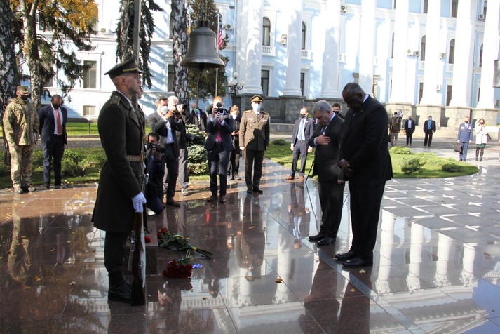 Міністр оборони Сполучених Штатів Ллойд Остін вшанував пам’ять загиблих українських військових. Так розпочався візит глави Пентагону до столиці України 19 жовтня.