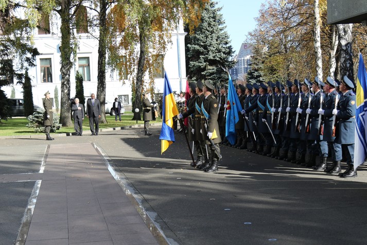 «Високоповажних гостей на території Міністерства оборони України зустрів очільник відомства Андрій Таран. У Залі пам’яті захисників України іноземна делегація вшанувала українських воїнів, які ціною власного життя виборювали волю та незалежність нашої держави від підступного російського окупанта», – повідомив пресцентр Міноборони.