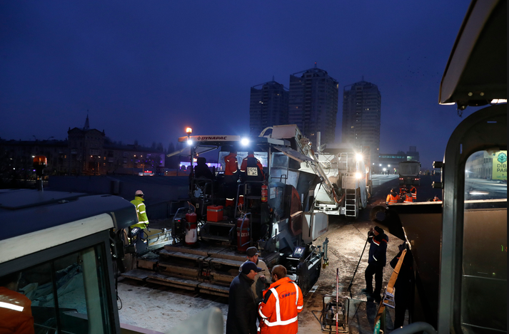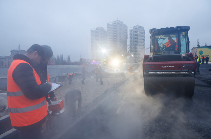 Минулої ночі будівельники розпочали асфальтувати Шулявський шляхопровід. Відео з місця робіт мер Києва Віталій Кличко опублікував на своїй сторінці в соціальній мережі Facebook.