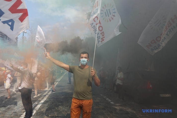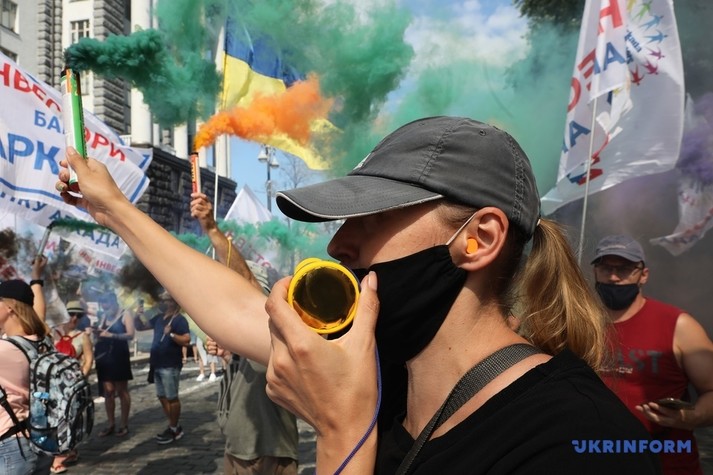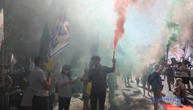 Мітингувальники заблокували центр Києва, урядовий квартал у диму (фото)