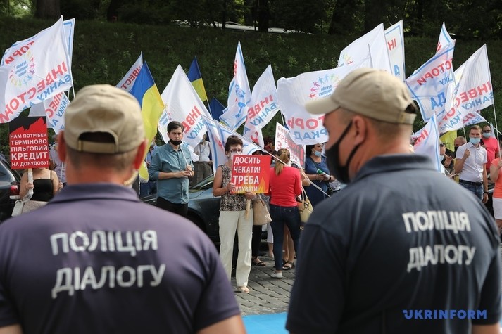 Мітингувальники також розгорнули банери зі своїми вимогами, серед яких, зокрема, викуп вільних площ за державними програмами, добудова 39 будинків за три роки.