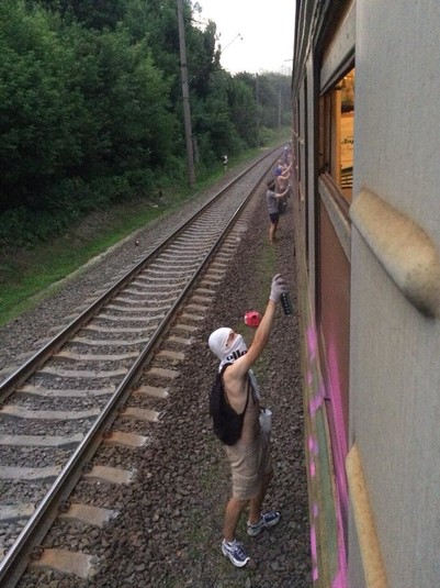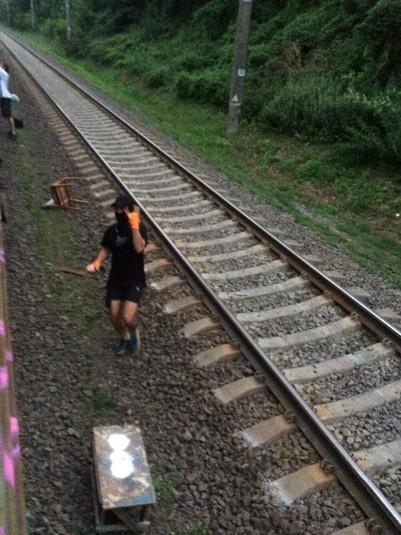 Молодики у масках зупинили електричку у Києві і розмалювали (фото)