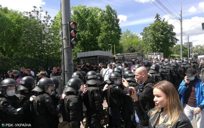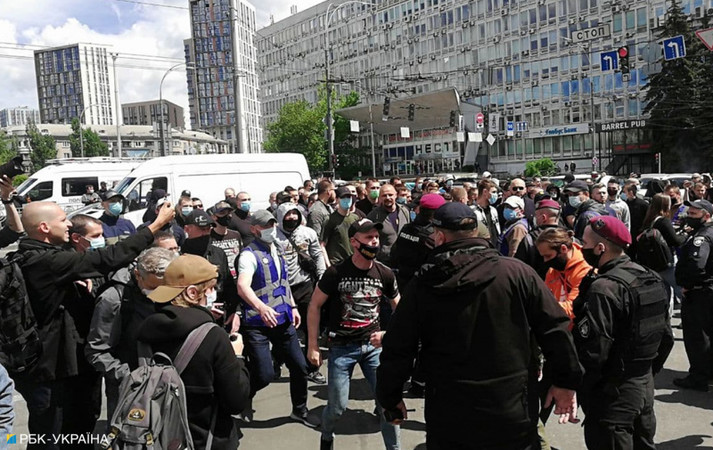 Прихильники Медведчука кидали предмети у відповідь. Втім противники не змогли прорвати кордон поліції, тому сутичка не перетворилися на пряме зіткнення.