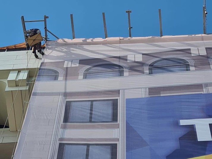 За інформацією видання «Бабель», банер зняли на прохання поліції, яка прийшла до Будинку профспілок.