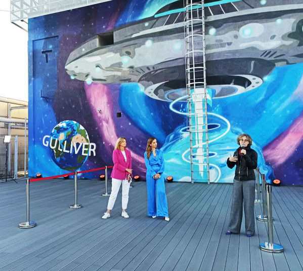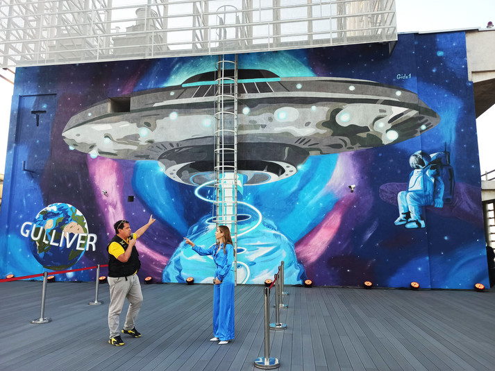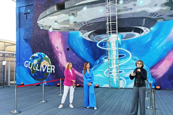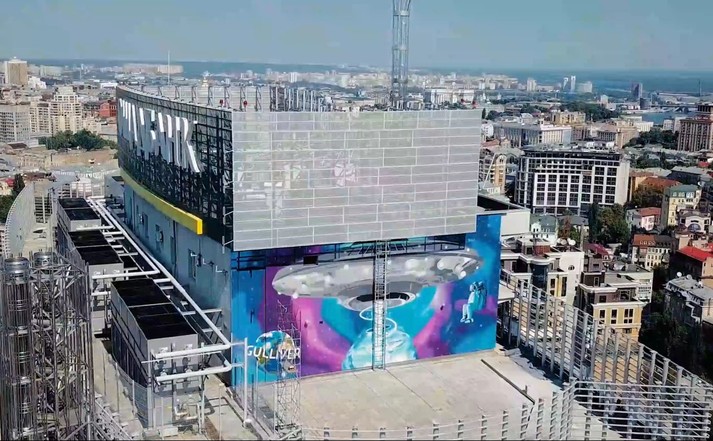Зображення намалювали на даху 34-го поверху торгово-розважального центру «Gulliver». У центрі Києва на висоті 140 метрів створили мурал «Космічний Всесвіт». Через максимально високе розташування стінопис ввійшов до Книги рекордів України. Про це повідомляється на сторінці спільноти «Інтересний Київ» у Fаcebook.