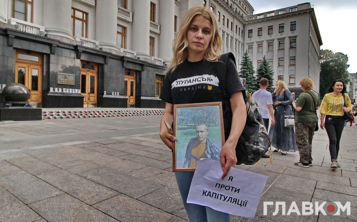 Нагадаємо, 22 травня біля будівлі Адміністрації президента у Києві проходив одиночний пікет дружини вбитого на Донбасі українського військового.