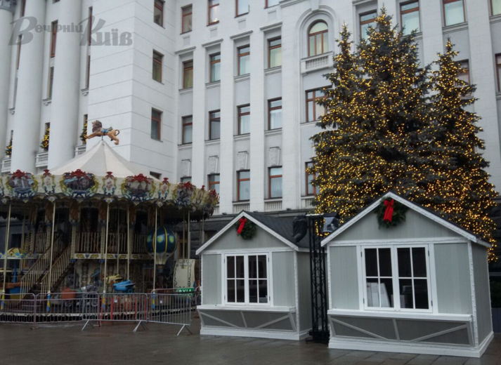 Спочатку на площі перед Офісом Президента змонтували ковзанку. Пізніше поруч поставили карусель і ялинку.