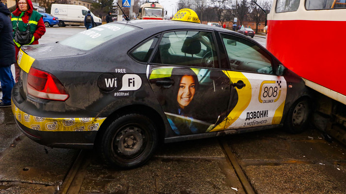 У таксі був водій і пасажир, вагон також був заповнений людьми. Ніхто з них не постраждав.