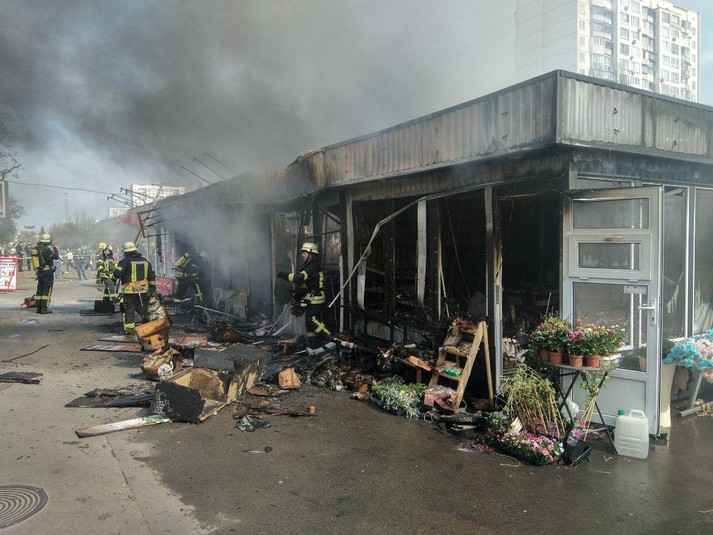 «На місце події негайно було направлено рятувальників найближчих пожежно-рятувальних підрозділів. По прибуттю на місце події вогнеборці встановили, що пожежа виникла в торговельному кіоску з розповсюдженням на суміжні торговельні кіоски», - повідомляє прес-служба столичного управління ДСНС.