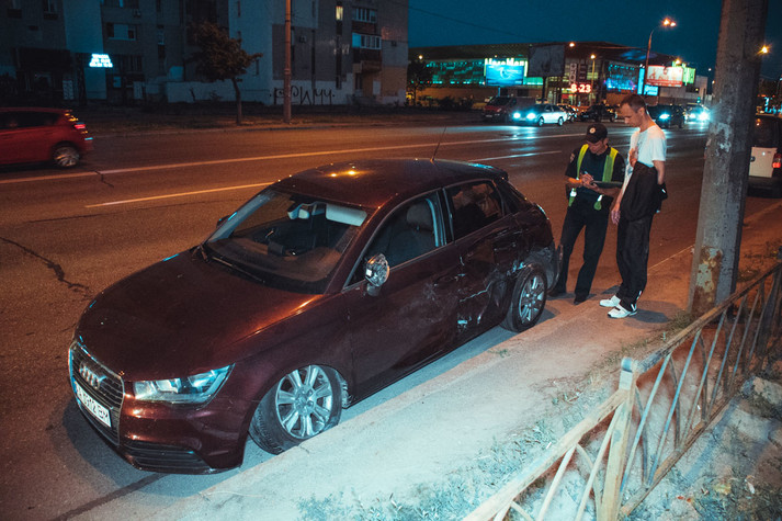 Audi рухалася по Дніпровській набережній з боку метро «Осокорки» в напрямку моста Патона, а Nissan - у протилежну сторону і повертав на вулицю Березняківська. На перехресті автомобілі зіткнулися. Внаслідок удару Audi відкинуло на смугу зустрічного руху під бордюр.