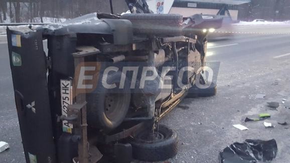Смертельна ДТП сталась в Дарницькому районі на Бориспільському шосе в напрямку Києва. Автомобіль Mitsubishi на шаленій швидкості протаранив відбійник. В наслідок чого перекинувся на бік.