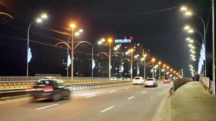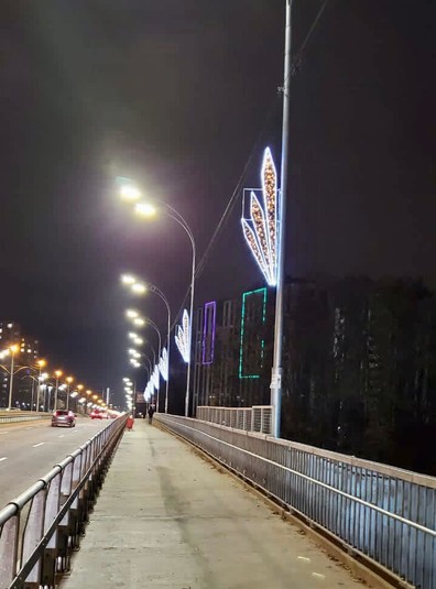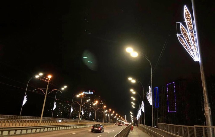 В рамках капітального ремонту на шляхопроводі встановили декоративну підсвітку: золотисте каштанове листя обрамлене сріблястою лінією. Загалом на споруді з’явилось 14 таких елементів. Використано енергоощадні LED-лампи, які споживають незначну кількість електроенергії (потужність елемента – близько 70 Вт).