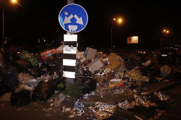 У Києві на Броварському проспекті, прямо біля входу на станцію метро «Лісова» розростається гора сміття. Поруч зупинка декількох маршрутів громадського транспорту і величезний потік людей, які змушені терпіти неприємний запах і спостерігати за далекою від естетики картиною.