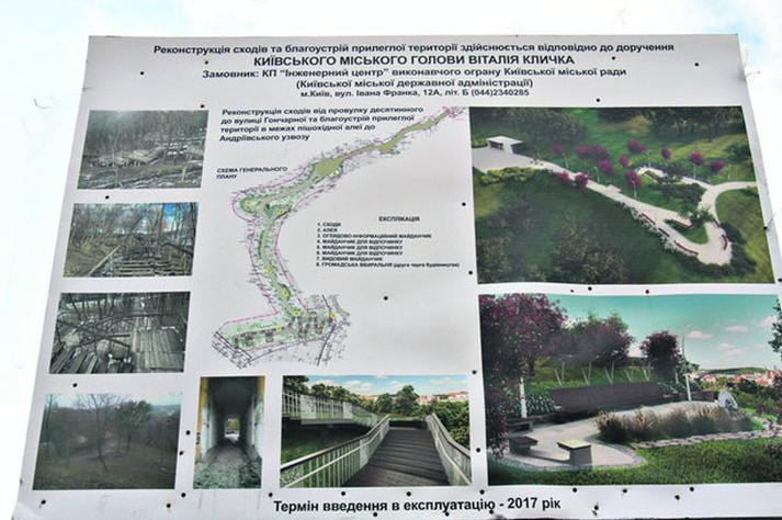 У березні було проведено тендер на 14,9 млн грн на будівництво сходів та благоустрою території на Старокиївській горі на Пейзажній алеї.
