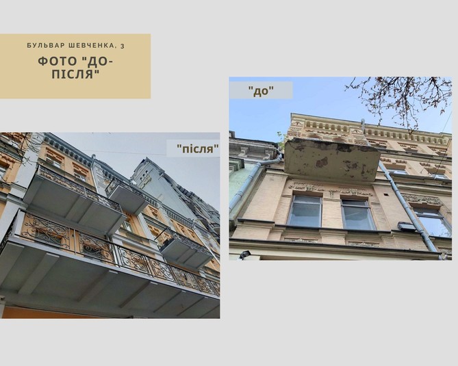 У Києві на бульварі Тараса Шевченка на замовлення Департаменту культури завершено реставрацію будинку № 3, що є пам’яткою архітектури і який довгий час знаходився у незадовільному стані, а окремі його частини навіть в аварійному.