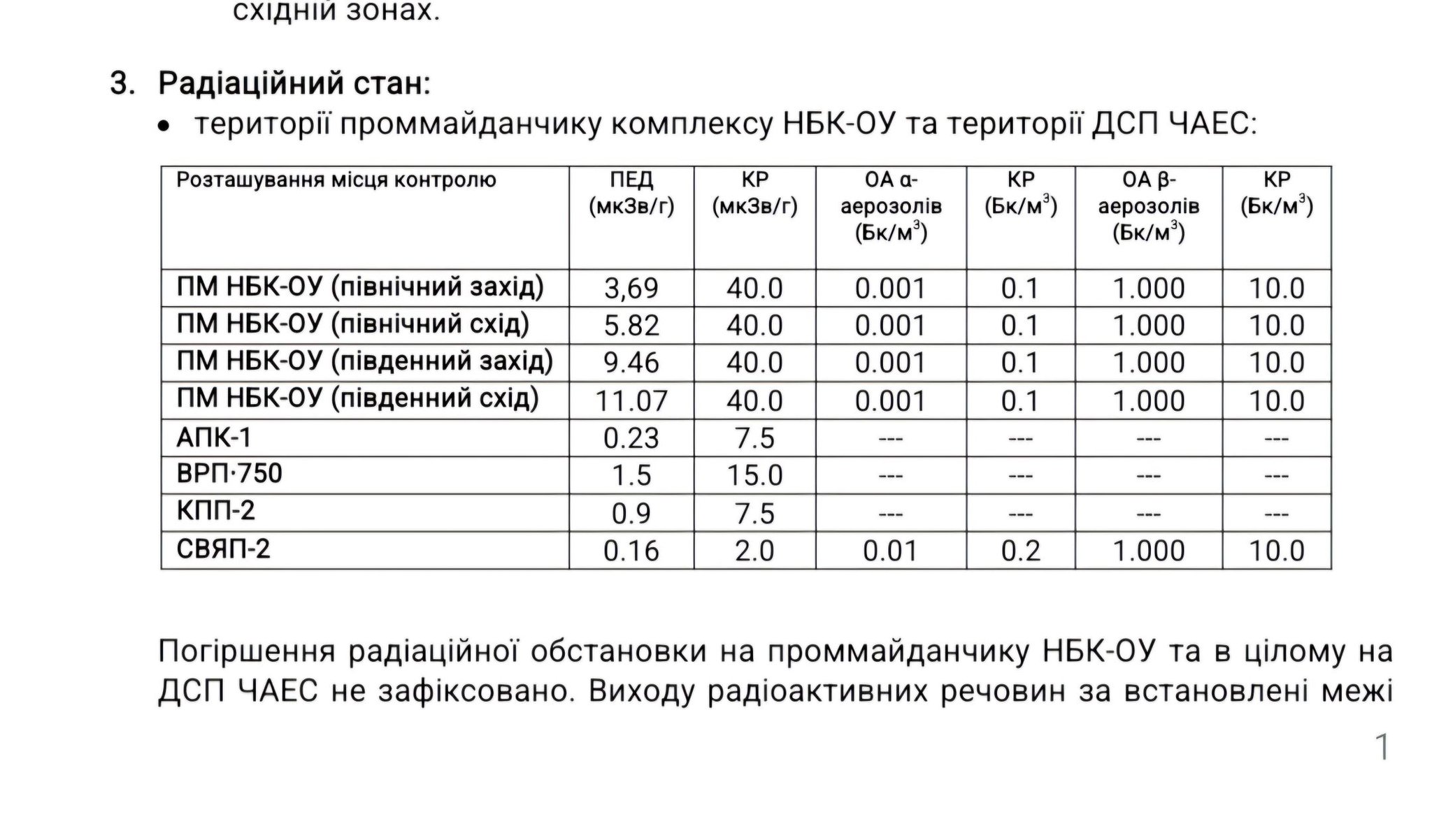 У Державному агентстві України з управління зоною відчуження.зазначили, що погіршення радіаційної обстановки на проммайданчику НБК-ОУ та в цілому на ДСП ЧАЕС не зафіксовано. Виходу радіоактивних речовин за встановлені межі не виявлено.