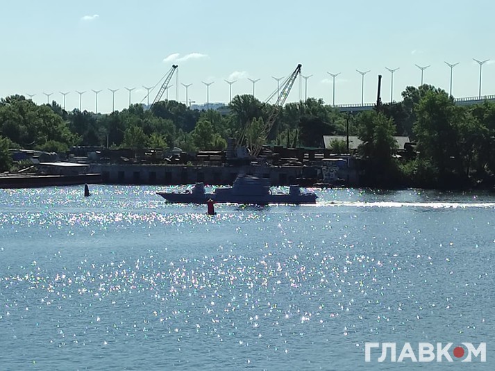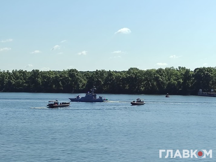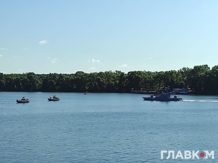 Як повідомляє «Главком», зокрема, військові катери здійснювали маневри на воді поблизу Подільсько-Воскресенського мосту.