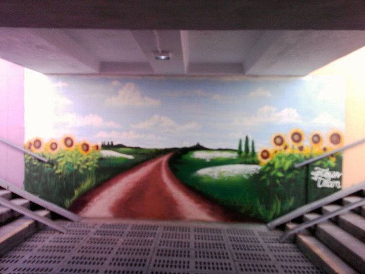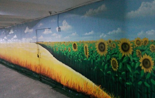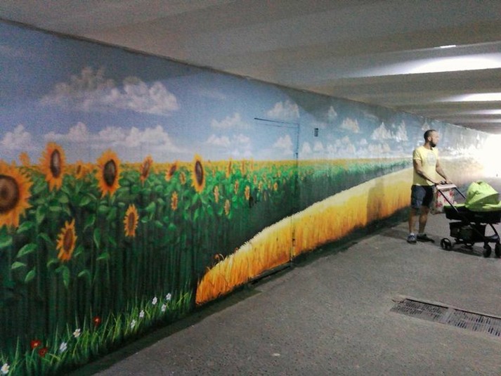 У Києві підземний перехід прикрасили соняхами й мальовничими зображеннями українського села.