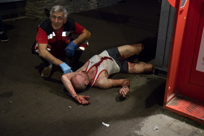 У ніч на середу, 13 червня, в Києві на вулиці Алма-Атинській виявили закривавленого чоловіка. Потерпілий лежав біля зупинки громадського транспорту «Вулиця Гродненська».