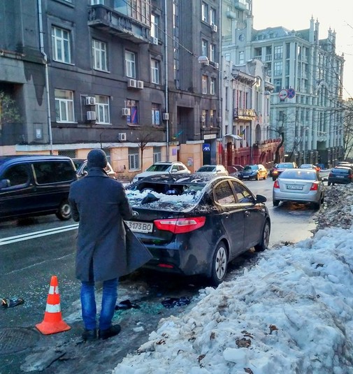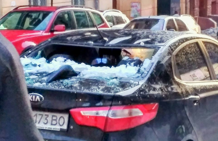 На голови та автівки киян падають крижані брили