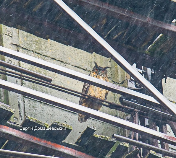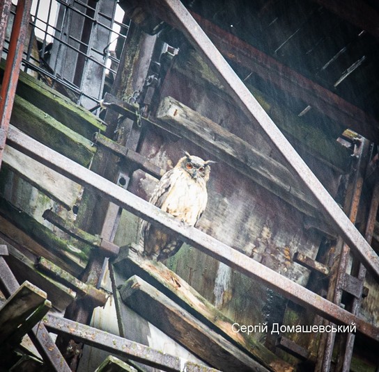 На риштуванні недобудованої градирні ЧАЕС було виявлено оселився пугач. Про це повідомляється на Facebook-сторінці Чорнобильського радіаційно-екологічного біосферного заповідника.