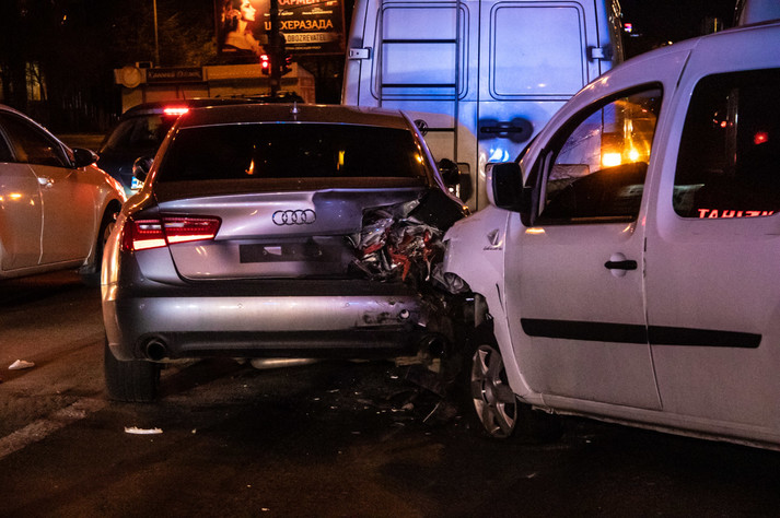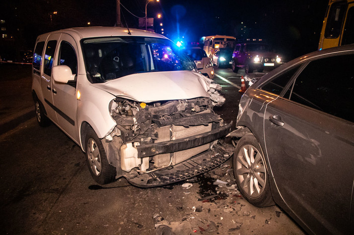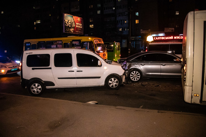У неділю, 14 квітня, в Києві сталася ДТП за участю двох автомобілів: на перетині Харківського шосе і вулиці Тростянецької Renault Kangoo влетів у Audi, що стояв попереду.