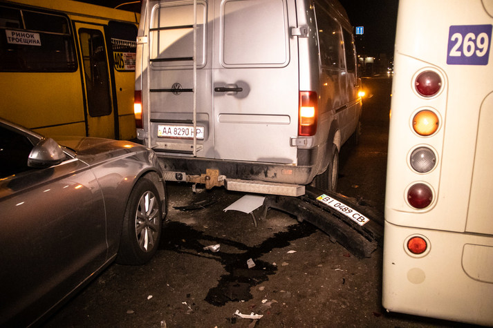 За словами очевидців, під'їжджаючи до світлофора, автомобілі почали різко гальмувати. Першим це зробив вантажний Volkswagen, після чого різко по гальмах ударив і водій Audi. А ось Renault, що їхав позаду, зупинитися не встиг і на повному ходу протаранив «німця».