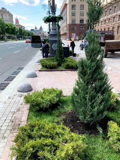На Хрещатику тимчасово висадили 250 дерев і кущів ялівцю (фото)