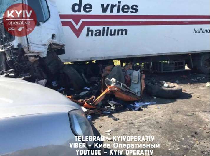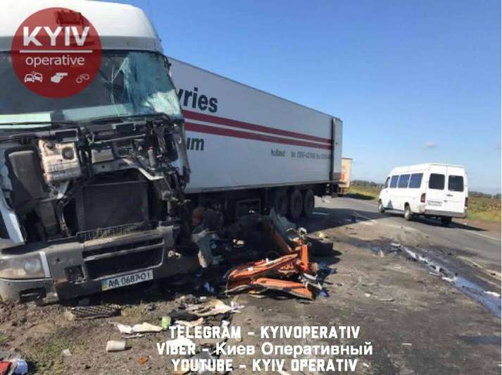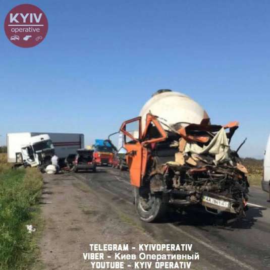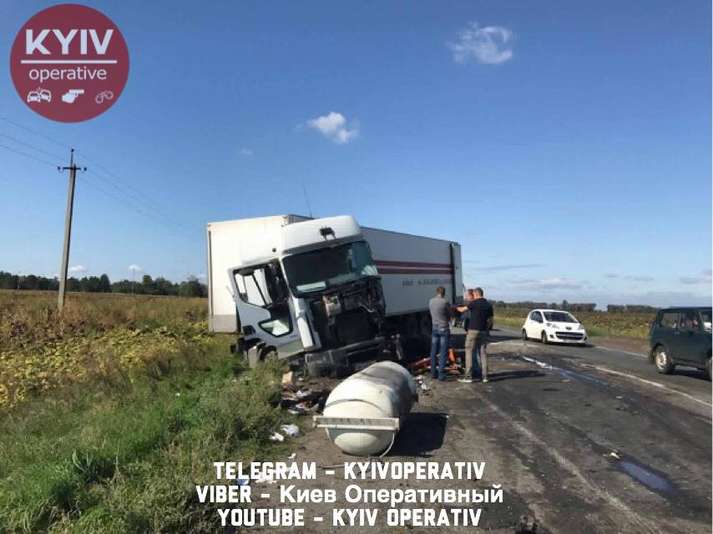 На Київщині бетономішалка влетіла у вантажівки (фото, відео)
