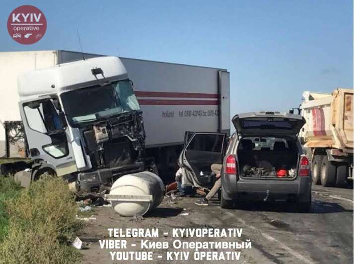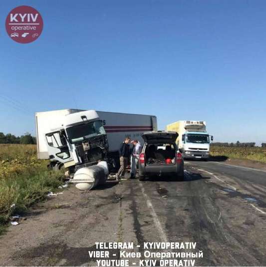 На Бориспільскій об'їзній дорозі зіткнулися два сідельні тягачі та бетономішалка. «Фури» рухалися одна за одною у напрямку з Києва.