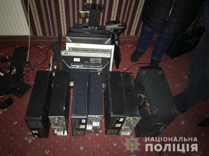 З приміщення правоохоронці вилучили 6 системних блоків та 9 моніторів.