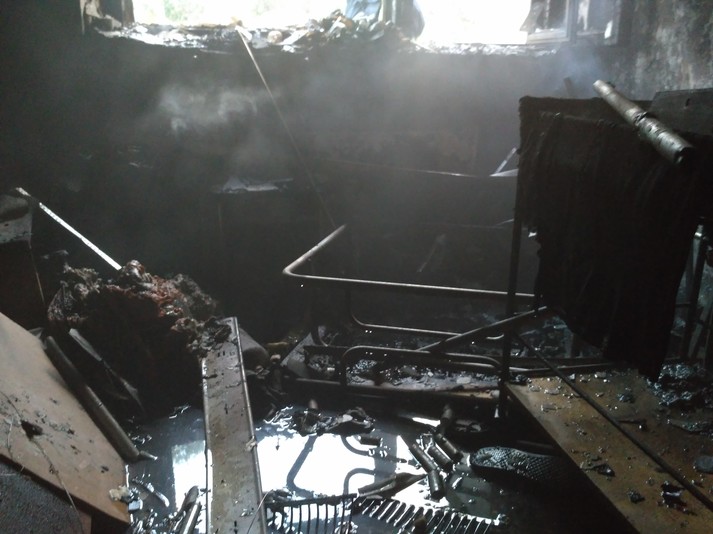 Вогнем знищено диван, крісла, вікно, пошкоджено облицювання стін та стелі кімнати і коридору, речі працівників.