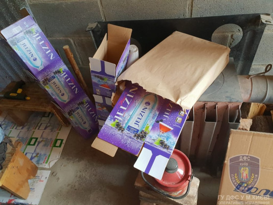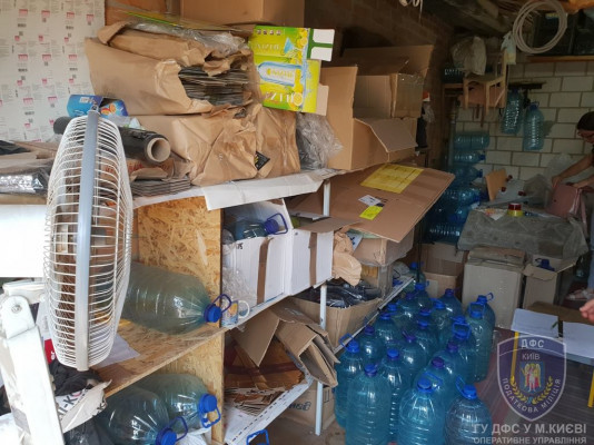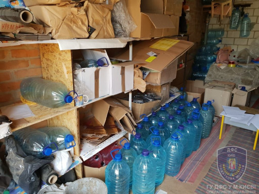 «Встановлено, що 28-річний молодик в гаражному боксі, розташованому в одному із райцентрів Київської області, організував підпільне виробництво підакцизних товарів. Процес виробництва був доволі простим: спирт невідомого походження змішувався з водою та концентратами харчових добавок через спеціальне обладнання, а отримана спиртовмісна суміш сумнівної якості запаковувалась в пакувальні матеріали з написами відомих брендів та реалізовувалась через мережу Інтернет», - йдеться в повідомленні.