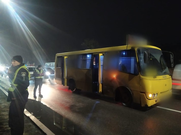 42-річний водій, керуючи маршрутним автобусом марки «Богдан» сполученням Бровари-Київ, здійснив наїзд на пішохода, який перетинав проїжджу частину дорогу у невстановленому для переходу місці.
