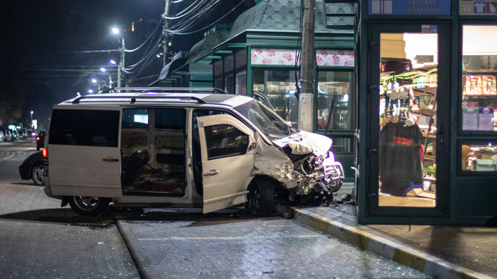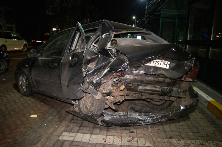 Аварія сталася в центрі міста, коли Mercedes влетів у Seat, Lanos і Ford. Після цього автомобіль влетів у кіоск біля зупинки, який від удару розвернуло вглиб тротуару.