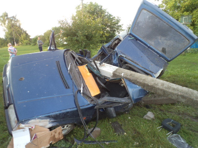 На Київщині пасажири Skoda виявилися заблокованими під стовпом, у який врізалися