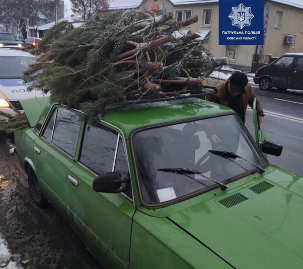 Білоцерківські патрульні виявили легковий автомобіль, водій якого перевозив ялинки без документів.