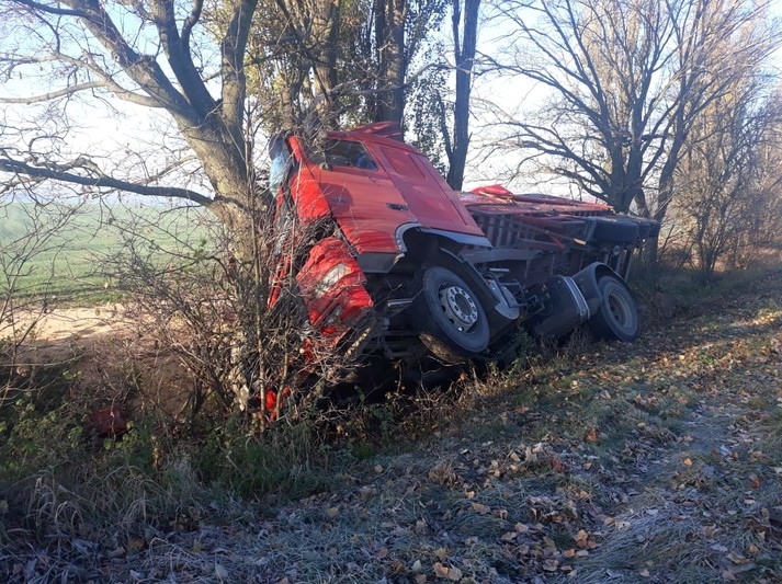 Прибувши на місце виклику, рятувальниками було встановлено, що на автодорозі Володарка-Ставище сталася ДТП: водій вантажівки не впорався з кернуванням та з'їхав у кювет з подальшим перекиданням причепа із соєю.