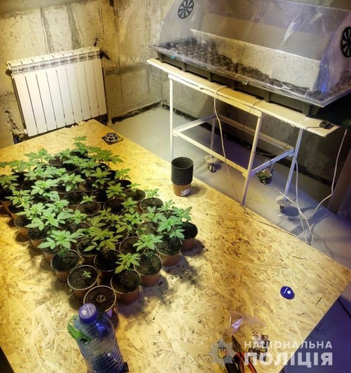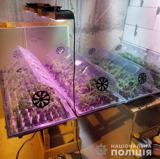 У Кагарлику Київської області чоловік у підвалі власного будинку обладнав приміщення, де під ультрафіолетовим освітленням вирощував рослини конопель.