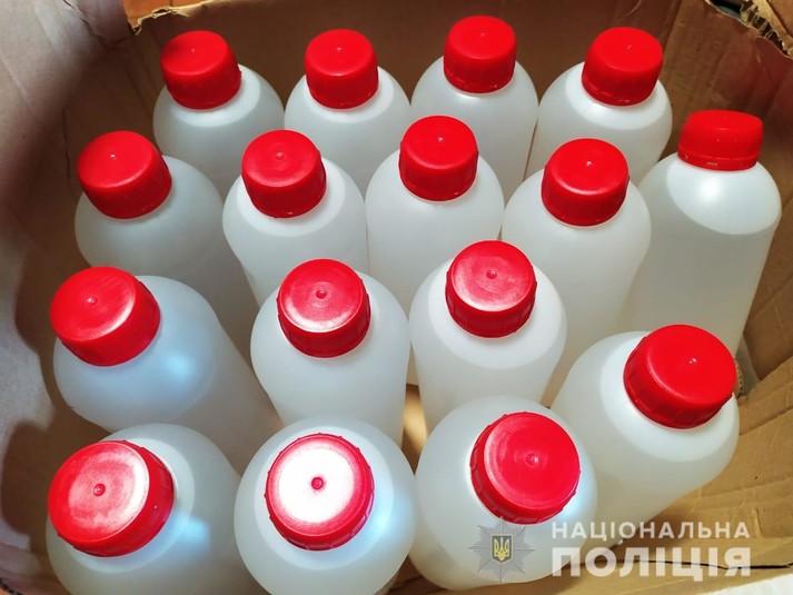 На Київщині поліція виявила підпільний цех з виготовлення антисептиків (фото, відео)
