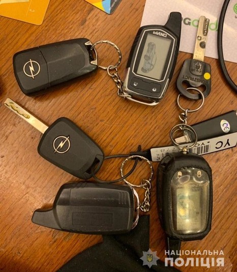 Було вилучено спецтехніку для прописки ключів до авто, пристрої для відкриття та заведення автомобілів та пристрій для пошуку GPS маячків, а також номерні знаки, та дев’ять свідоцтв про реєстрацію транспортних засобів.