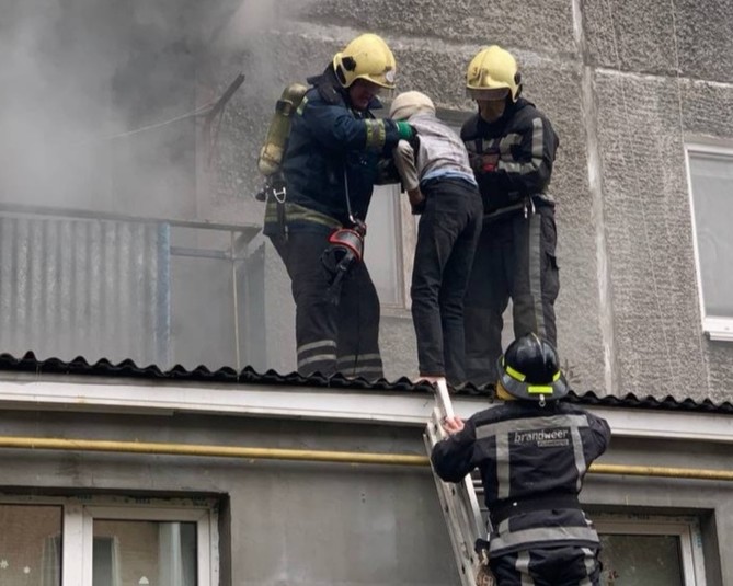 Бійці встановили, що з однієї з квартир на другому поверсі йде дим, а на балконі знаходиться людина. Рятувальниками за допомогою трьохколінної драбини врятовано жінку 1947 року народження. По сходовій клітині з сусідніх квартир евакуйовано дев’ять осіб.