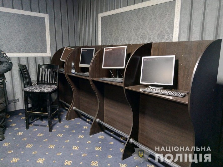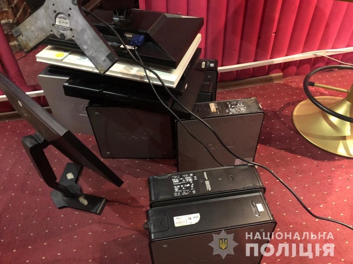 Працівники поліції провели там невідкладний обшук, де виявили та вилучили відповідні речові докази. Вилучено 10 системних блоків, 11 моніторів, комплектуючі до комп’ютерної техніки, готівку.