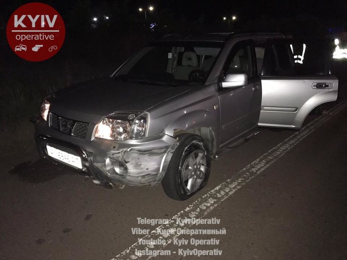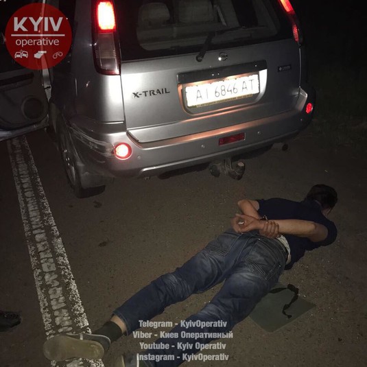 Не встигнувши вийти з авто, в їх автомобіль летить цеглина. Кинув чоловік зі свого автомобіля #Nissan, г.н # AI6846AT, і почалася гонитва. Через 20 хвилин погоні, на трасі Київ-Чернігів, біля села Калинівка, порушник втрачає контроль над автомобілем і врізається у відбійник, після чого поліцейські Броварського відділення поліції блокують автомобіль.