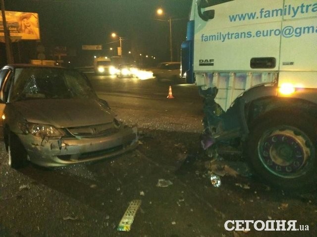 Під Києвом сталася чергова п'яна ДТП. Водій автомобіля «Хонда», виїжджаючи з Гостомеля на трасу Київ-Ковель, не пропустив фуру та скоїв зіткнення.