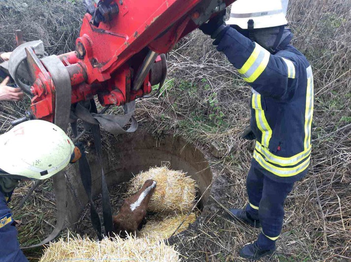 Спільними зусиллями працівників ДСНС і місцевого населення за допомогою рятувальних рукавів та трактора тварину вдалося витягнути на поверхню.