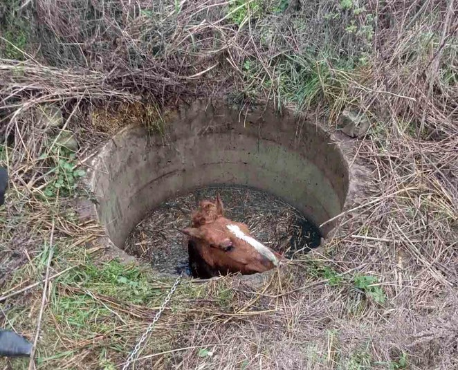 Повідомлення до оперативно-диспетчерської служби Обухівського району надійшло від стурбованої мешканки села Халеп’я. Жінка розповіла, що її кінь впав у колодязь, який був відкритий і розташований у заростях поблизу колишнього колгоспу.