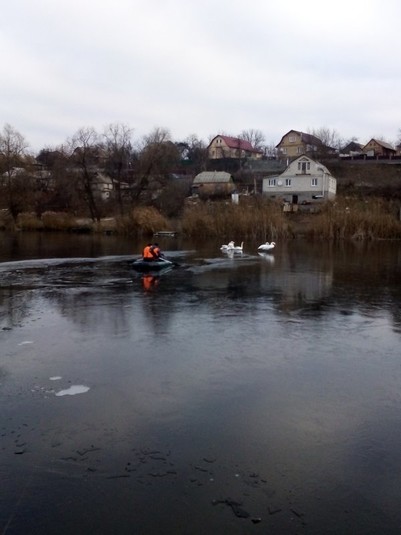 Так, 24 листопада о 9:00 до оперативно-диспетчерської служби Кагарлицького району надійшло повідомлення про те, що на місцевому ставку лебеді вмерзли у воду.