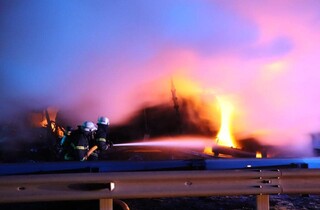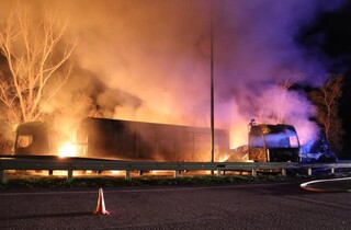 «Сьогодні вночі рятувальники Київщини ліквідували масштабну пожежу за участі трьох вантажівок, що призвело до зупинки руху у напрямку столиці. В одній із вантажівок транспортувався гас. На жаль, двоє людей загинули», – йдеться у повідомленні.