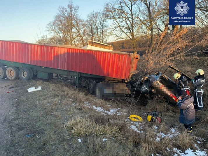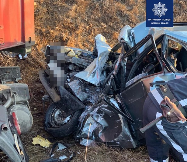 На Київщині сталася смертельна ДТП: фура знесла ВАЗ з дороги (фото)